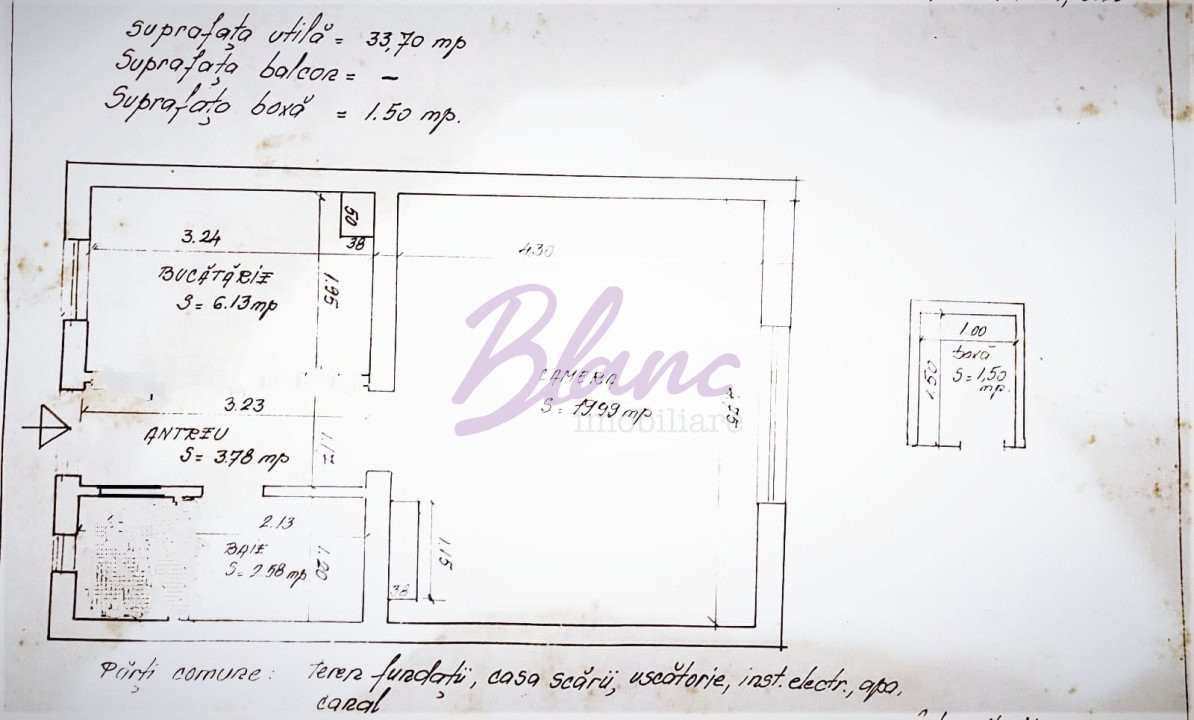 Imobilul are o suprafață utilă de 34 mp, fiind compus din bucătărie, 1 dormitor și o baie. Acesta este situat la etajul 3 din 3 (bloc cu acoperiș).