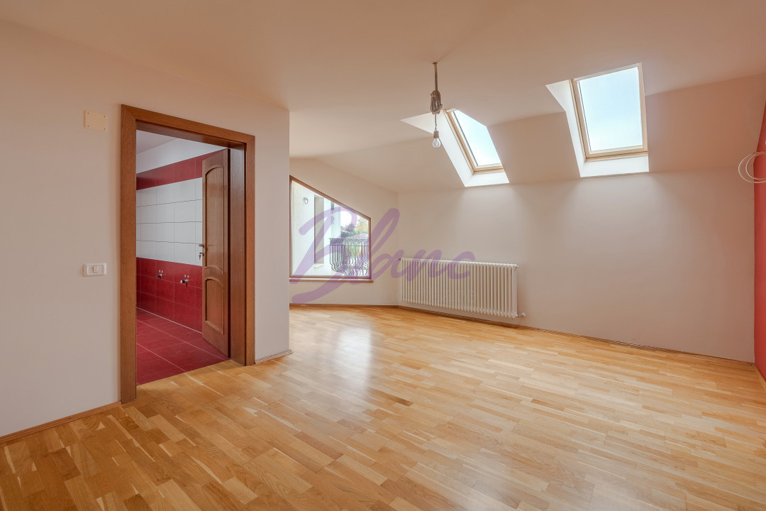 Mansarda este compusă din hol, o cameră cu baie proprie, dressing, două camere, baie, bibliotecă și spațiu de divertisment. În plus, există două balcoane și o terasă, care completează perfect zona de relaxare.
