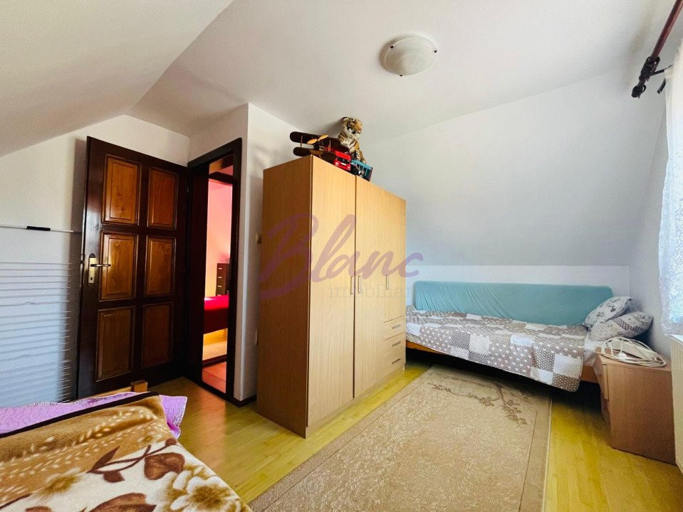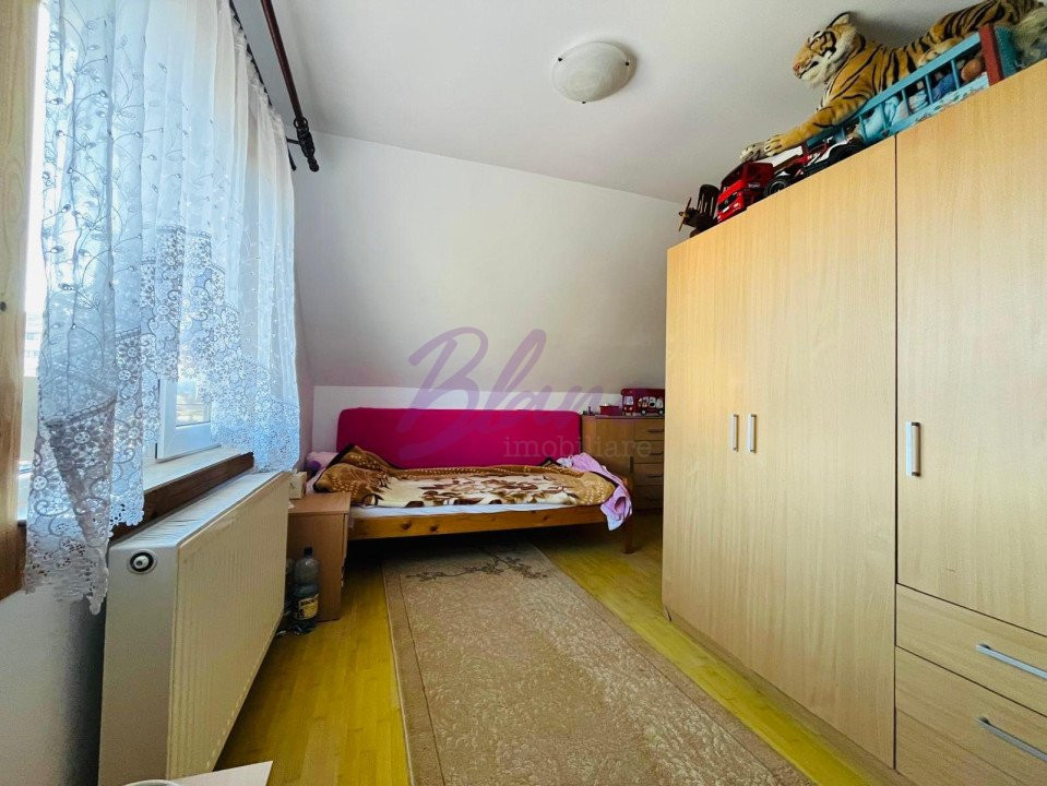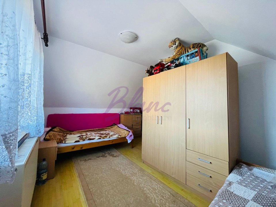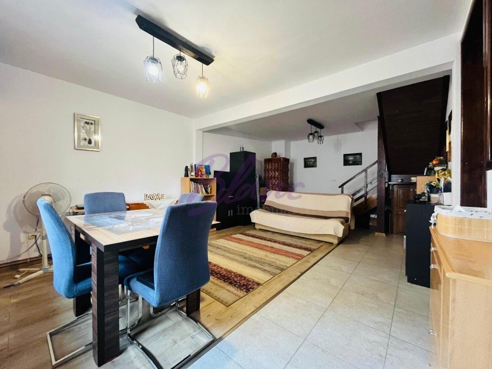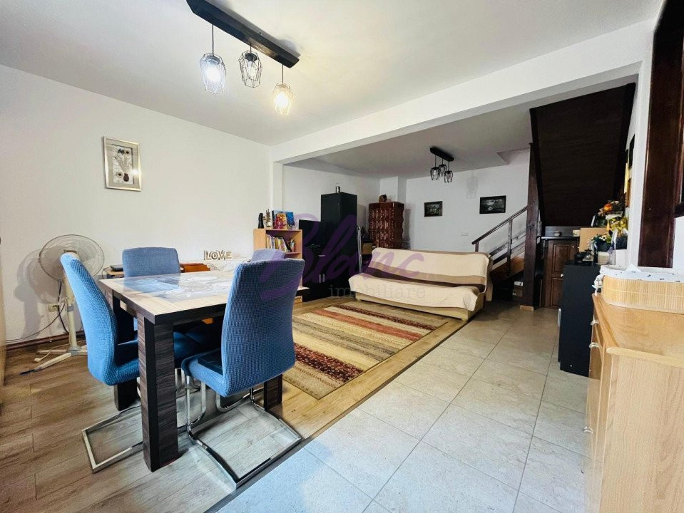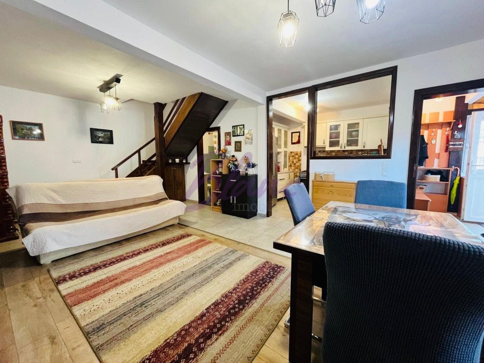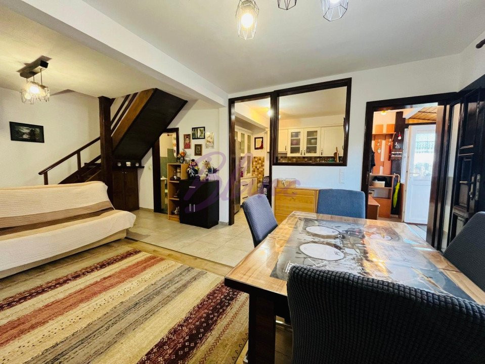 Casa este tip duplex cu parter și mansardă, potrivit pentru o familie sau pentru cineva care caută un loc accesibil și funcțional.