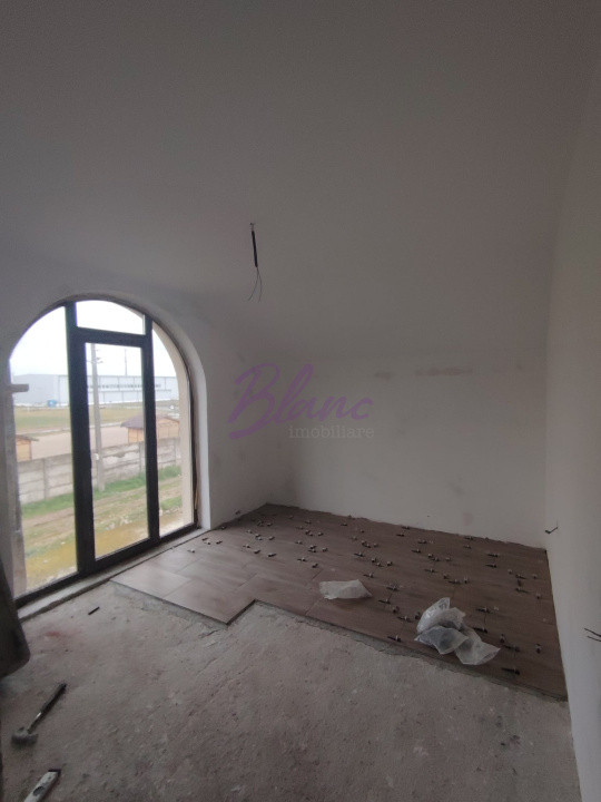 La etaj sunt trei dormitoare, dintre care unul matrimonial cu dresing si baie proprie si inca o baie care deserveste celorlalte doua dormitoare. Fiecare dormitor are iesire la balcon propriu.