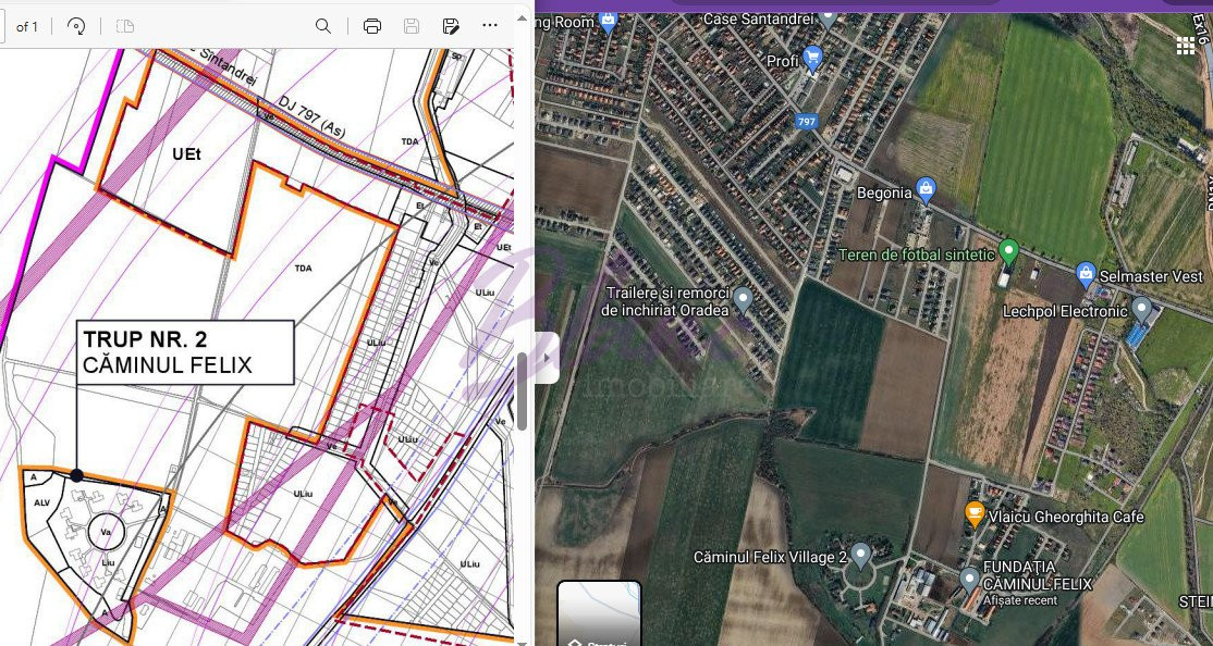 Coeficientii urbanistici ne indica un POT maxim de 50% si CUT maxim de 2,4, fiind in zona UEt.